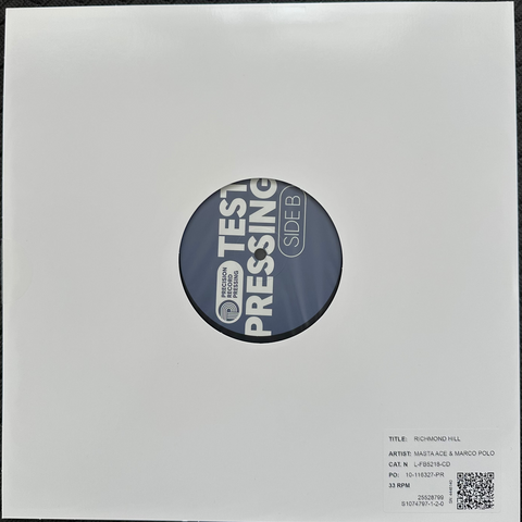These are rejected instrumental test pressings from the Richmond Hill album by Masta Ace and Marco Polo. A true collector's piece.