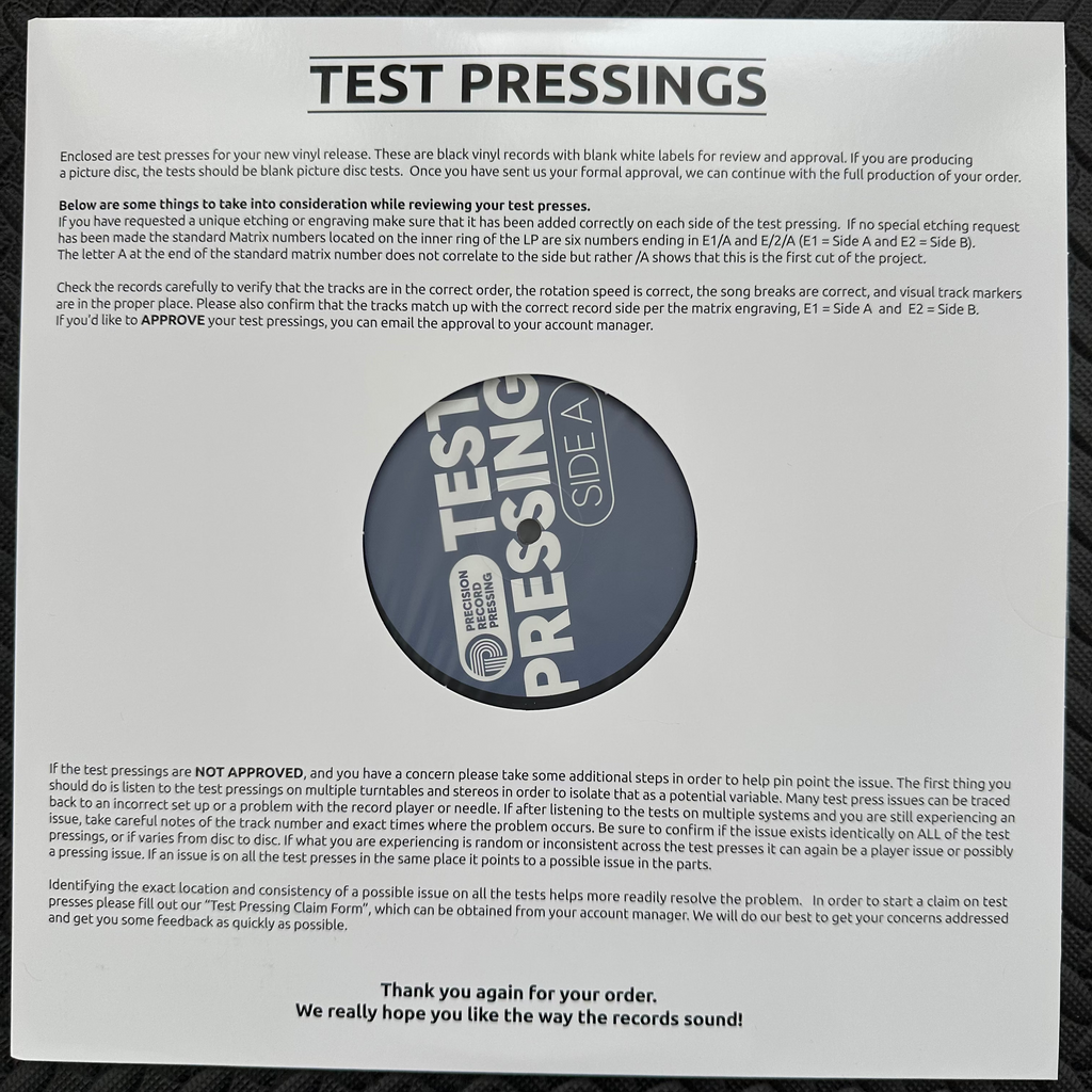 Only 5 copies of this test press exist- and these are the last 2.